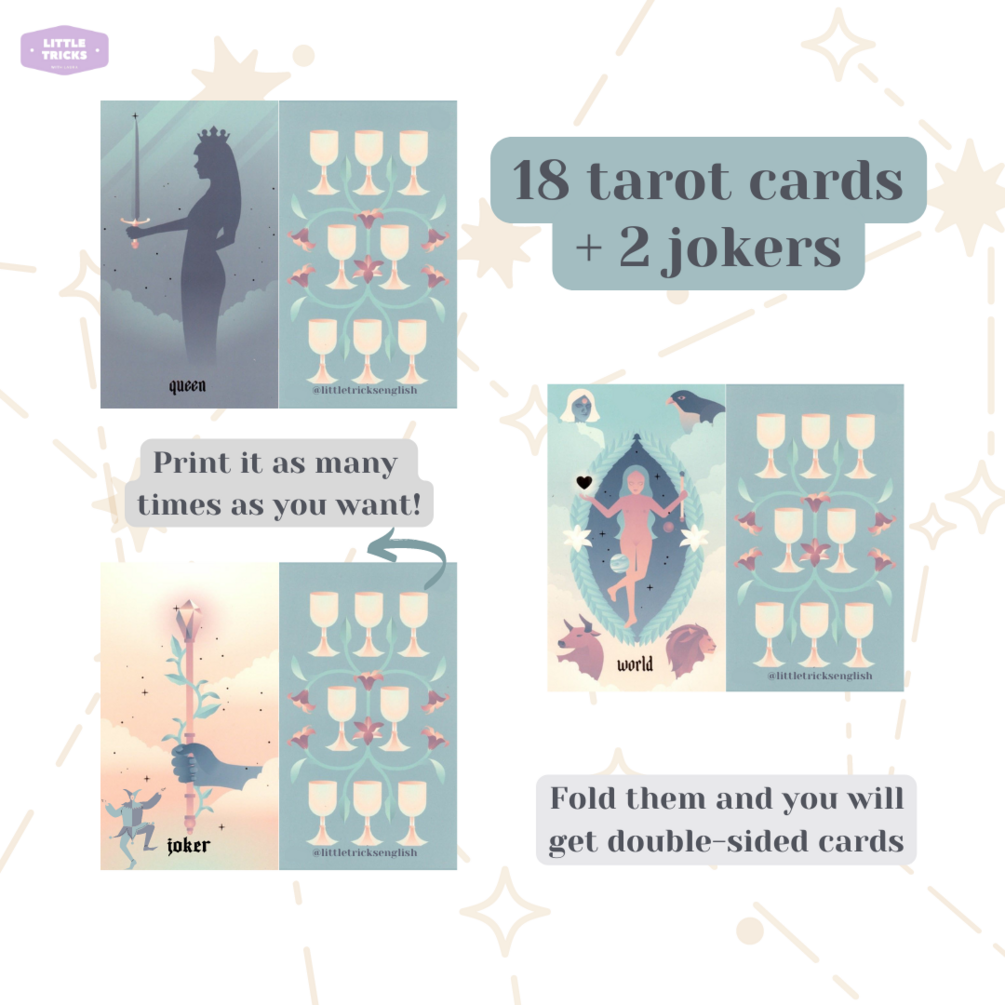 Tarot cards and a board to practice the Future and make predictions, and another board to practice the Past, Present and Future tenses.